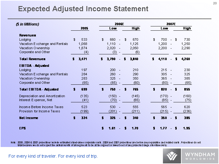 | Expected Adjusted Income Statement Note: 2005, 2006 & 2007 projections include estimated stand-alone corporate costs. 2006 and 2007 projections are before any separation and related costs. Projections do not total because we do not expect the actual results of all segments to be at the highest or lowest end of any projected range simultaneously. ($ in Millions) 20 |
